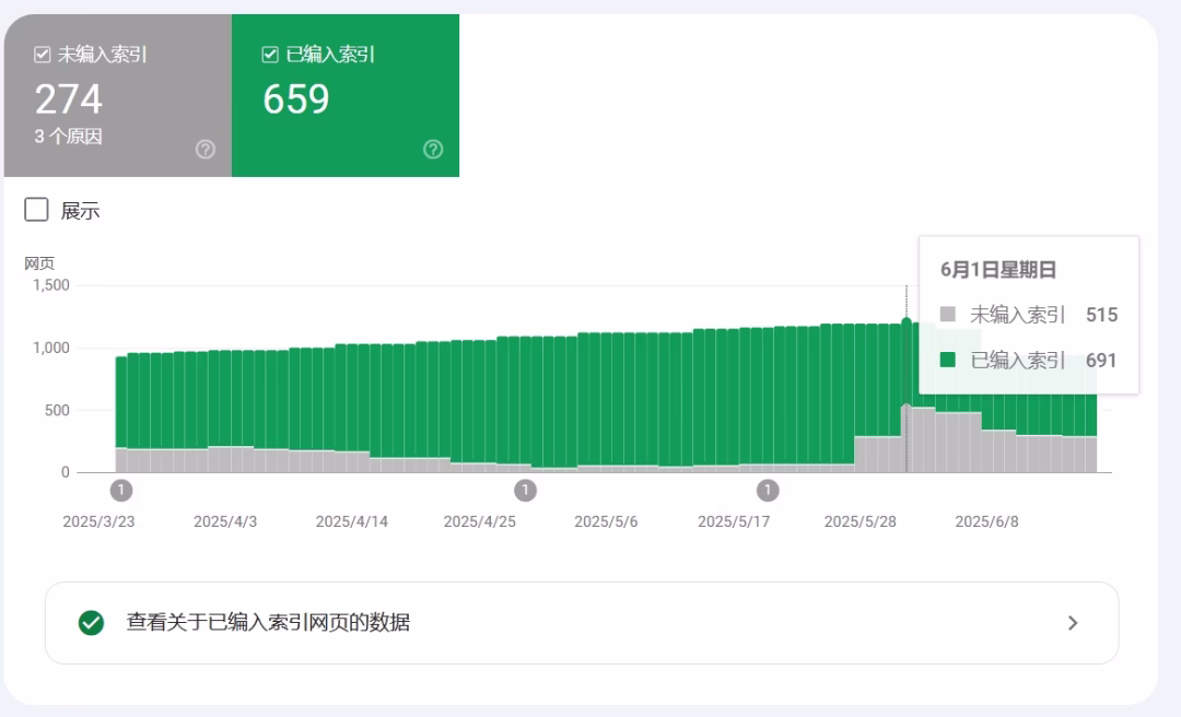 我再细看原因,发现网站里有大量页面处于“已抓取-尚未编入索引”的状态。说白了,就是谷歌来看过了,但它觉得这些页面是“垃圾”,连收录的资格都不给。